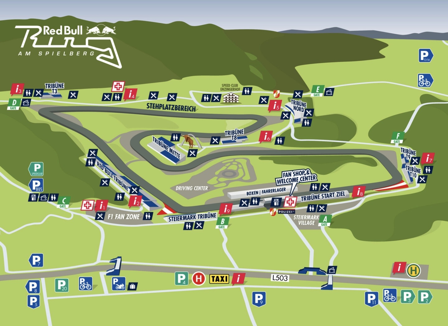 Sobald du den Haupteingang des Red Bull Rings nach deinen entspannten 10 Minuten erreicht hast, beginnt dein Weg zu den Tribünen und Stehplätzen. Plane diese Gehzeiten unbedingt mit ein – sportliche Schuhe sind hier Dein bester Freund!